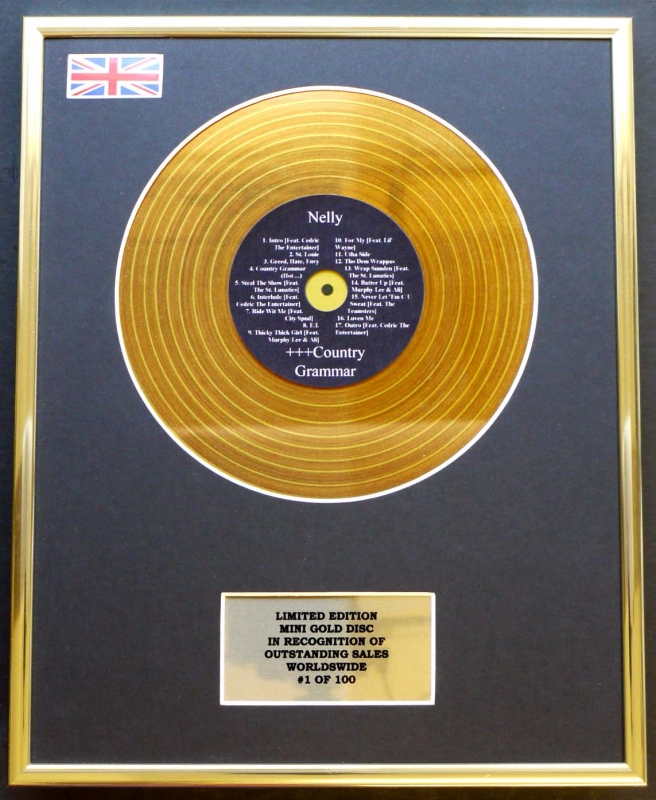 NELLY /MINI METAL GOLD DISC DISPLAY/LIMITED EDITION/COA/ COUNTRY GRAMMAR