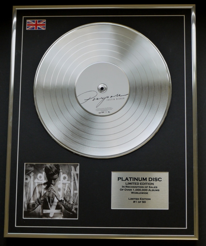 JUSTIN BIEBER/LTD EDITION CD PLATINUM DISC/RECORD/PURPOSE