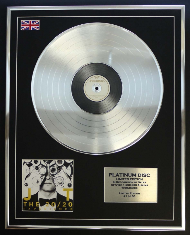JUSTIN TIMBERLAKE/LTD EDITION CD PLATINUM DISC/RECORD/THE 20/20 EXPERIENCE